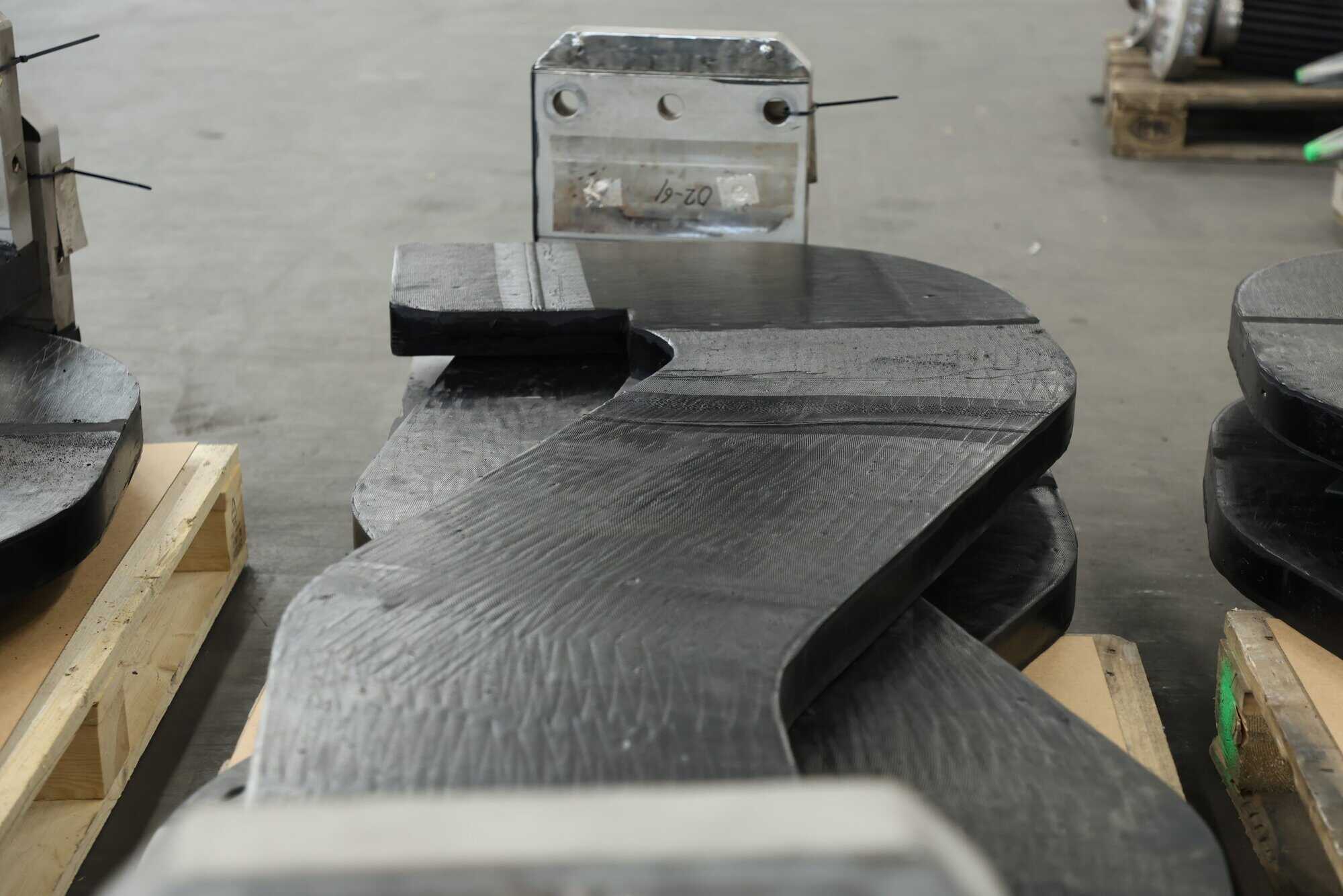 Løsningen er vores egenudviklede varmvulkaniserede RG-slidgummi, der med sin uovertrufne holdbarhed og slidstyrke effektivt forlænger drifts- og oppetiden for tusindvis af sliddele i forskellige industrier. Her kan blandt andet nævnes slidplader, rørbøjninger, sugehoveder, pumpehuse og tragte.